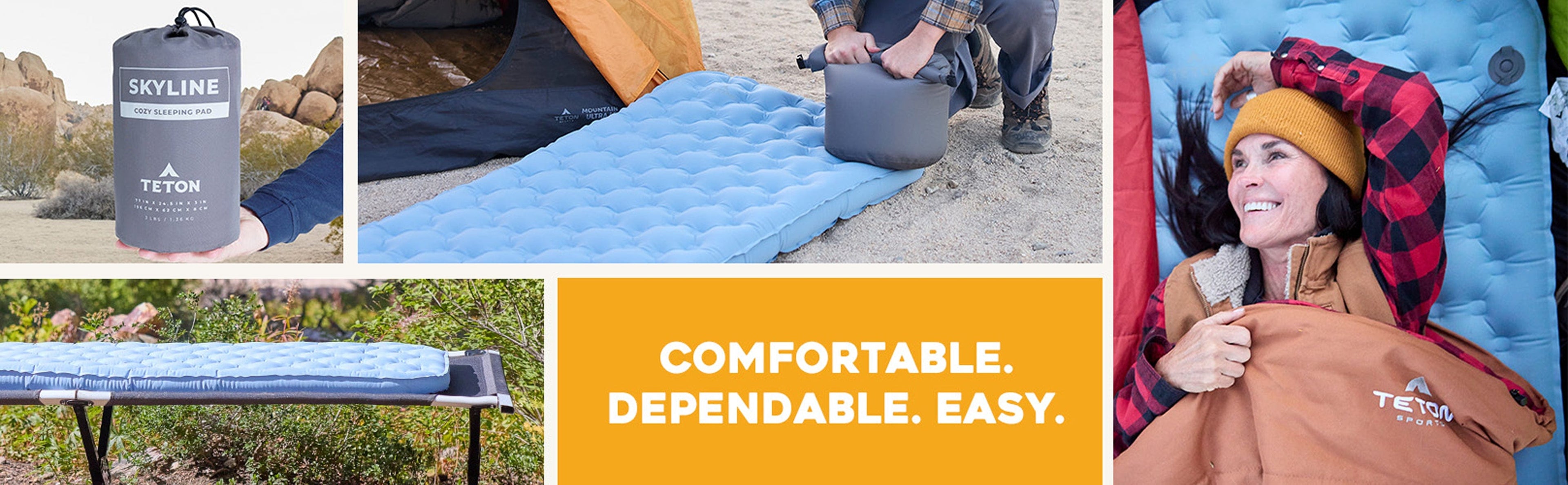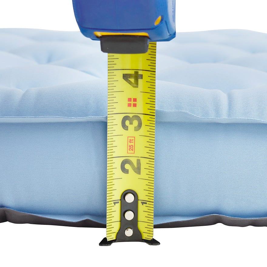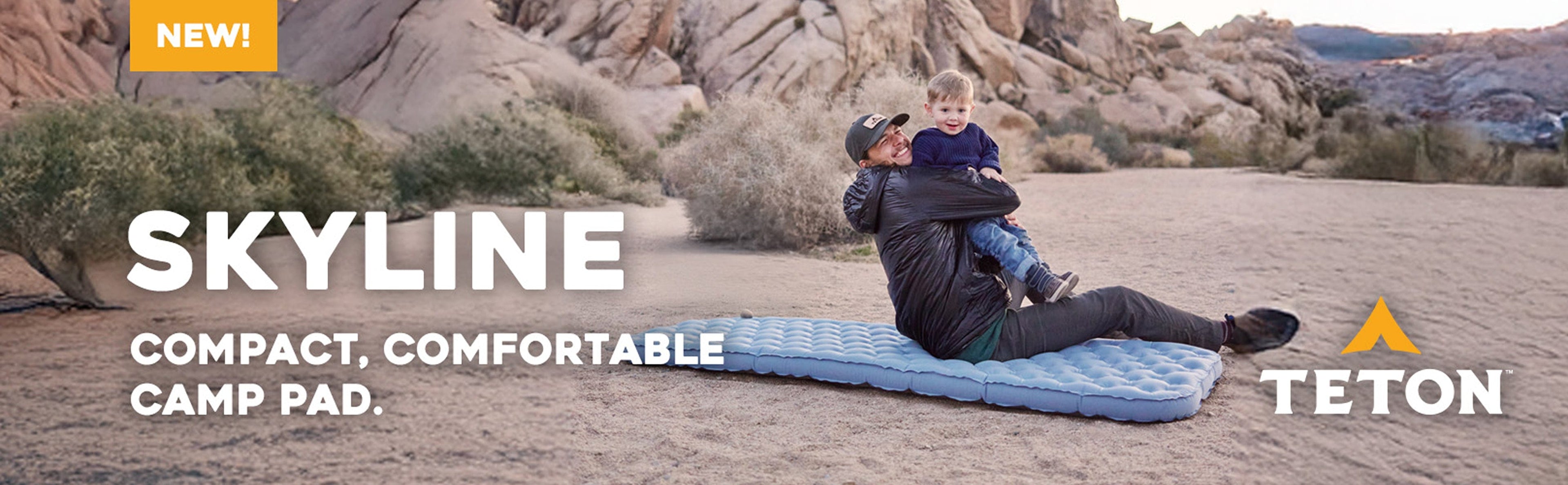 Our most comfortable inflatable air mattress, the Skyline pad is easy to inflate* to three inches of comfortable sleeping height. Deflating is easy with the built in magnetic flap, and the Skyline rolls up compact with a secure Velcro closure strap. Skyline’s air channels provide full body support and prevent that typical air mattress wobble. The ultra quiet top makes it easy to turn over at night without waking yourself or others. Choose between the insulated version, the ideal sleeping pad for cold weather, and non-insulated version to match your adventure. Easy to use and built to last, sleeping on the Skyline Insulated Camp Pad, you may just want to stay an extra night this trip!