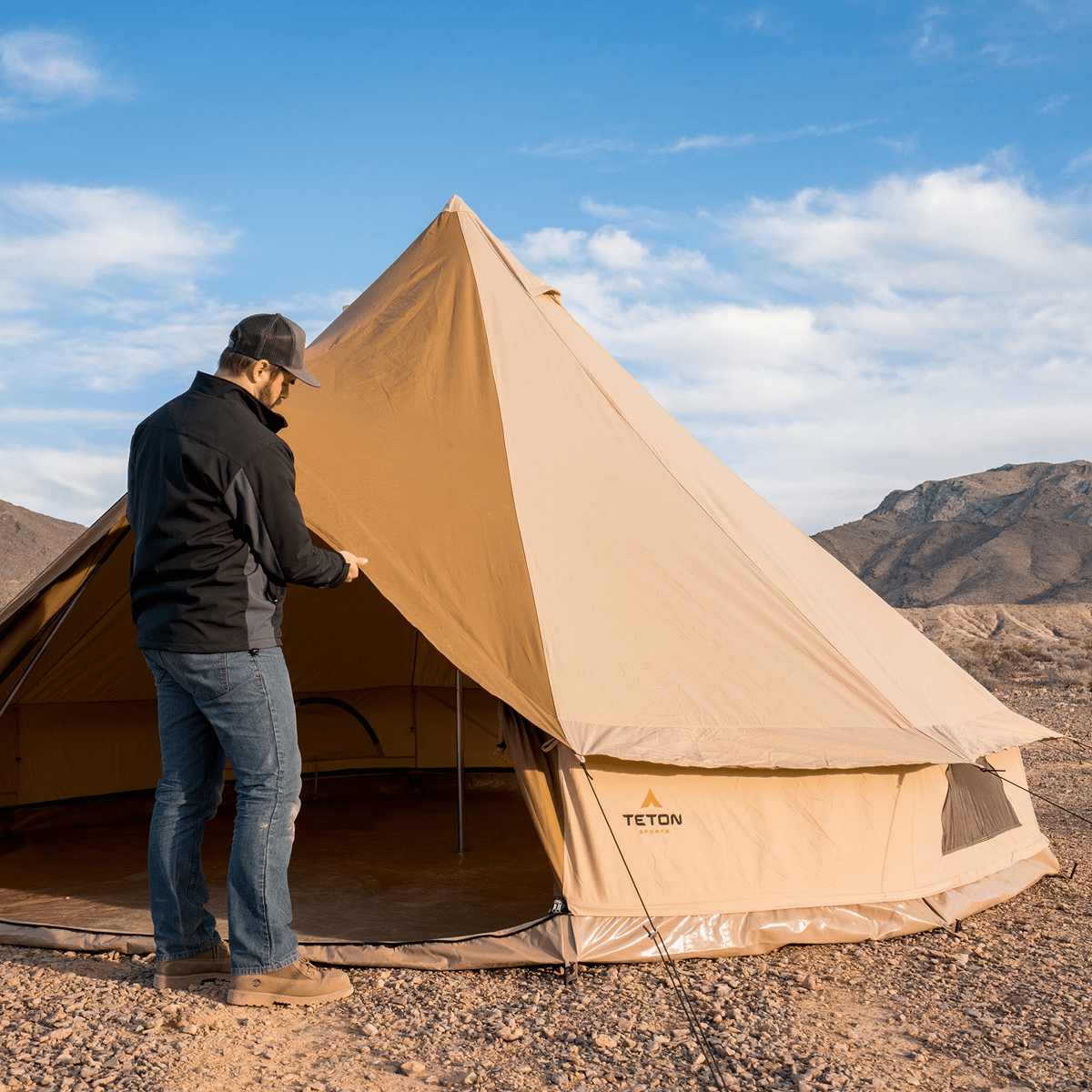 Make memories that last with our picturesque Sierra canvas tent. Created with 100% cotton canvas and a sturdy bathtub floor, the Sierra is both durable and breathable. Your tent should be as versatile as you are: make the most of the Sierra’s detachable parts to customize your trip, whether it’s enjoying shade from the bell top or stargazing from the bottom. Sleep easy knowing your spacious four-season tent is safely reinforced with premium, heavy-duty steel stakes. Camp cozy. Shop Teton.