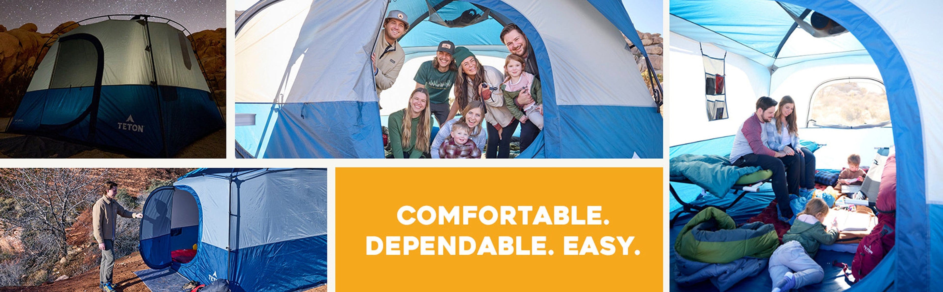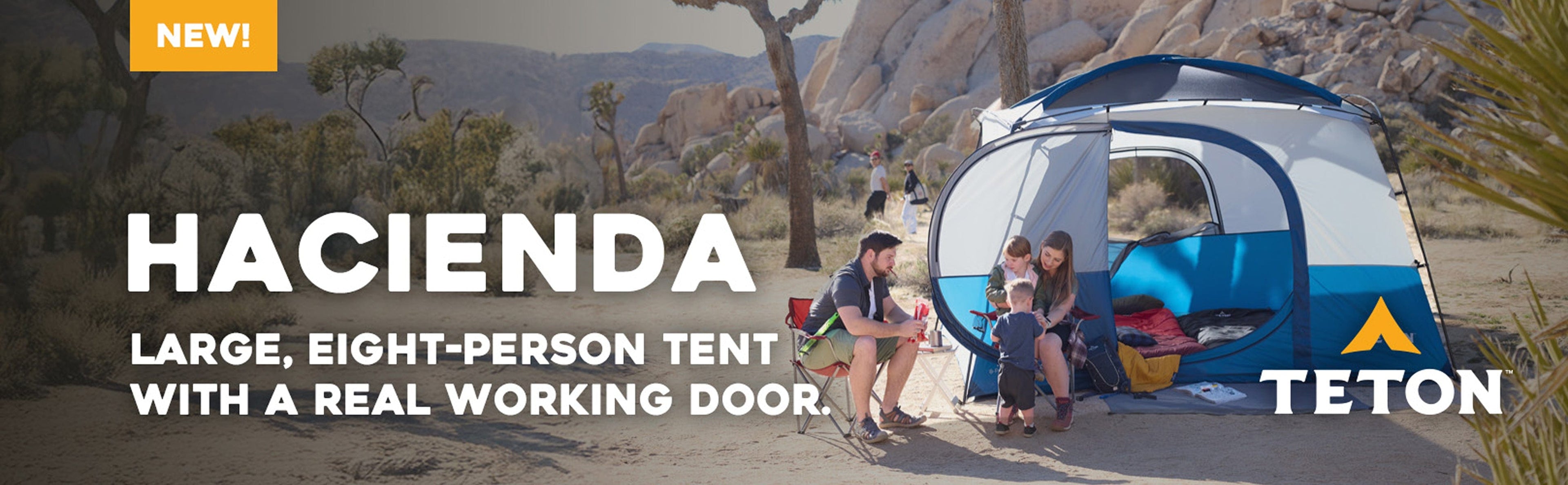 Create unforgettable camping memories with our spacious Hacienda Tent. Designed to comfortably accommodate up to eight people, this tent features a Teton exclusive you won't find anywhere else: a real swinging door! Make your next campout easy by attaching the built in door clip to hold the door open while you set up. The built in doorway entrance flap keeps rain out and holds your door closed, even if it's not fully zipped! Full mesh roof ensures optimal airflow, bringing the outside air in and allowing for breathtaking stargazing experiences at night. With impressive 6’ tall ceilings, you’ll enjoy ample standing room, making it easy to move around, set up cots, and organize your gear. The Hacienda Tent combines convenience and comfort, providing plenty of space for everyone to relax and enjoy the great outdoors. Comfortable, dependable, and easy, trust Teton for the best camping gear for your next adventure.