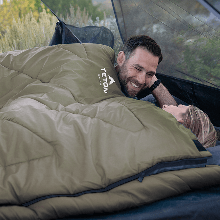 Our comfortable oversized Celsius sleeping bag is ready for whatever the wilderness brings. Choose between the XXL size at 90 x 39 inches, the Regular size at 80 x 33 inches, the Mammoth size at 94 x 62 inches, or the Li'l junior size at 66 x 26 inches to fit your needs and ensure everybody sleeps happy. Its double-layer construction and innovative fiber fill provide the warmth you need. Choose between -25°F/-32°C, 0°F/-18°C, or 20°F/-7°C temperature ratings to meet your all-season sleeping bag needs. The Celsius sleeping bag is prepared for anything with its firm offset stitch, anti-snag zipper tech, and ultra-durable stuff sack, but enjoy guaranteed security with our Teton Lifetime Warranty. Sleep easy. Shop Teton.