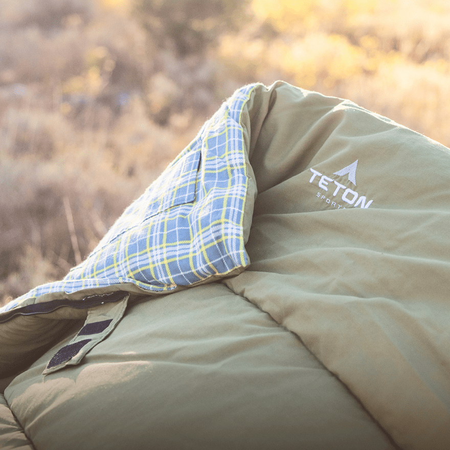 Experience the perfect blend of comfort and affordability with the Teton Evergreen flannel sleeping bag. Crafted from durable canvas and lined with plush flannel, this rectangle sleeping bag offers a soft and cozy feel reminiscent of your favorite flannel shirt. Our softest bag yet, the Evergreen is designed to keep you warm and comfortable on your outdoor adventures. With temperature ratings ranging from -10°F to 35°F, and two sizes: regular standard size or Mammoth double-wide, you can choose the level of insulation and size that best matches your adventure. The compression straps make it easy to roll up and store, while the heavy-duty zippers ensure long-lasting durability. Enjoy the warmth and comfort of home, even in the great outdoors. Sleep easy. Shop Teton.