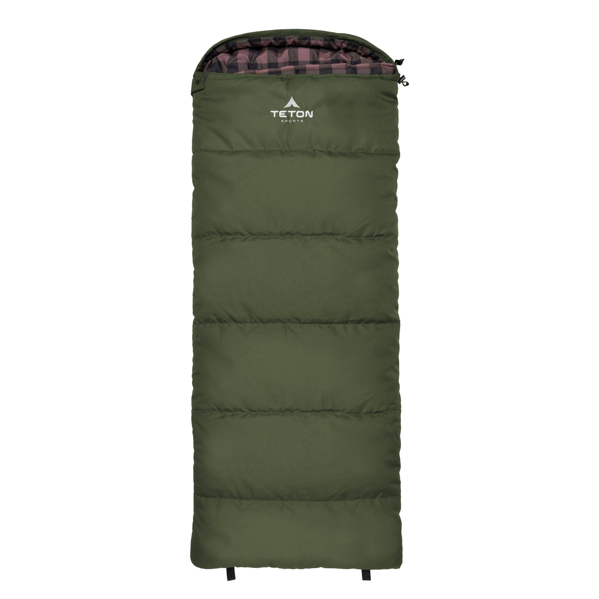 Experience ultimate comfort with the Bridger Sleeping Bag, our largest and most spacious sleeping bag. Significantly wider than standard rectangle bags, this oversized durable sleeping bag with flannel lining and a cinchable mummy hood is designed for those who crave extra room. The ultra-tough canvas exterior retains heat efficiently, while the soft flannel lining ensures you feel warm all night long. Perfect for a range of weather conditions from -35˚F to +20˚F and available in multiple sizes: Li'l Junior (kids), Regular, or Mammoth Double (two-person), choose the temperature rating and size that matches your family camping adventure. Whether you’re facing warm summer nights or frigid winter conditions, this is our warmest bag yet. Sleep easy. Shop Teton.